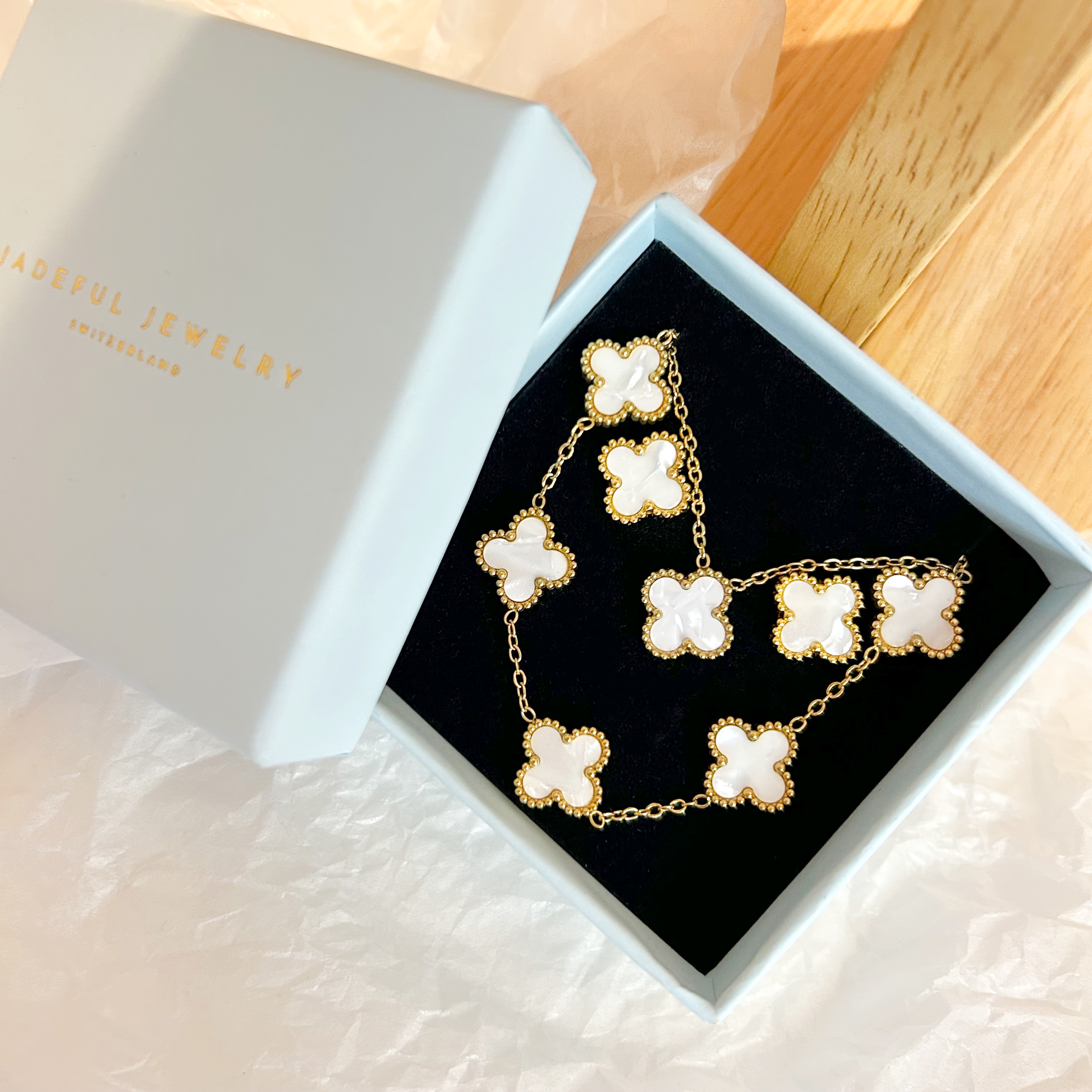 CLOVER jewelry set – mother-of-pearl white