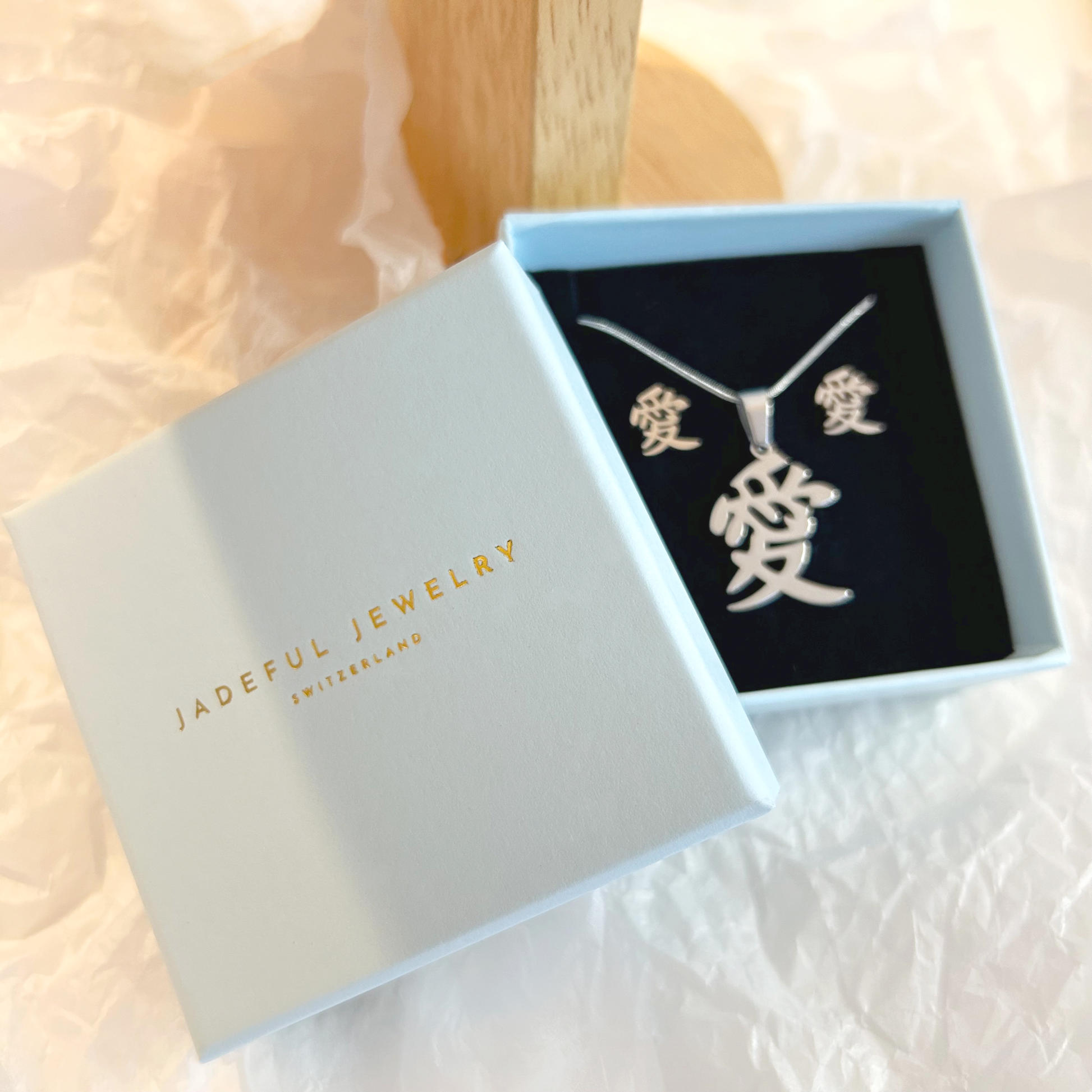 Das GAARA "愛" Schmuck Set in Silber vereint harmonisch Ohrstecker und Halskette zu einem bedeutungsvollen Ensemble. Beide Stücke tragen das mächtige Symbol der Zuneigung – das japanische Kanji/Chinesisch für „Liebe“ – und sind eine Hommage an den beliebten Charakter Gaara aus Naruto, dessen Entwicklung von Isolation zu liebevoller Führung inspiriert. Das „愛“-Zeichen bildet sowohl die Ohrstecker als auch den dezenten Anhänger der Halskette, gearbeitet in klarem, silbernem Edelstahl. Die feinen Schlangenketten unterstreichen die zeitlose Botschaft mit schlichter Eleganz.