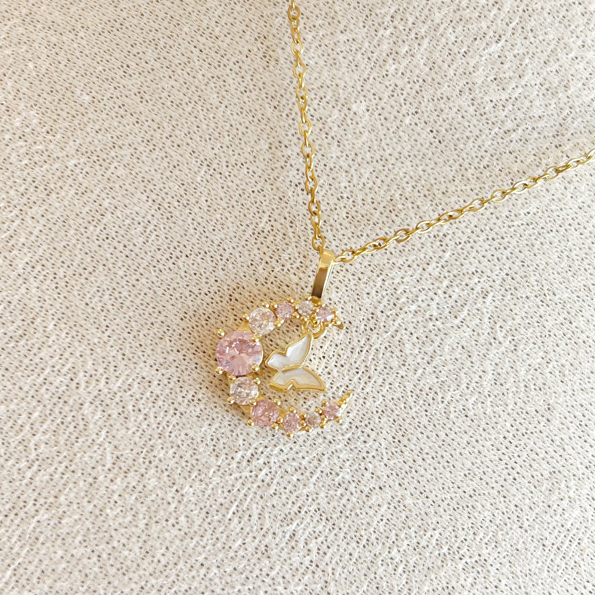 Gefertigt aus hochwertigem, vergoldetem Edelstahl und mit sorgfältig platzierten Details, ist diese Halskette wasserfest, hautfreundlich und ein bezauberndes Accessoire für alle, die an die Magie der Nacht und die poetische Schönheit der Verwandlung glauben.