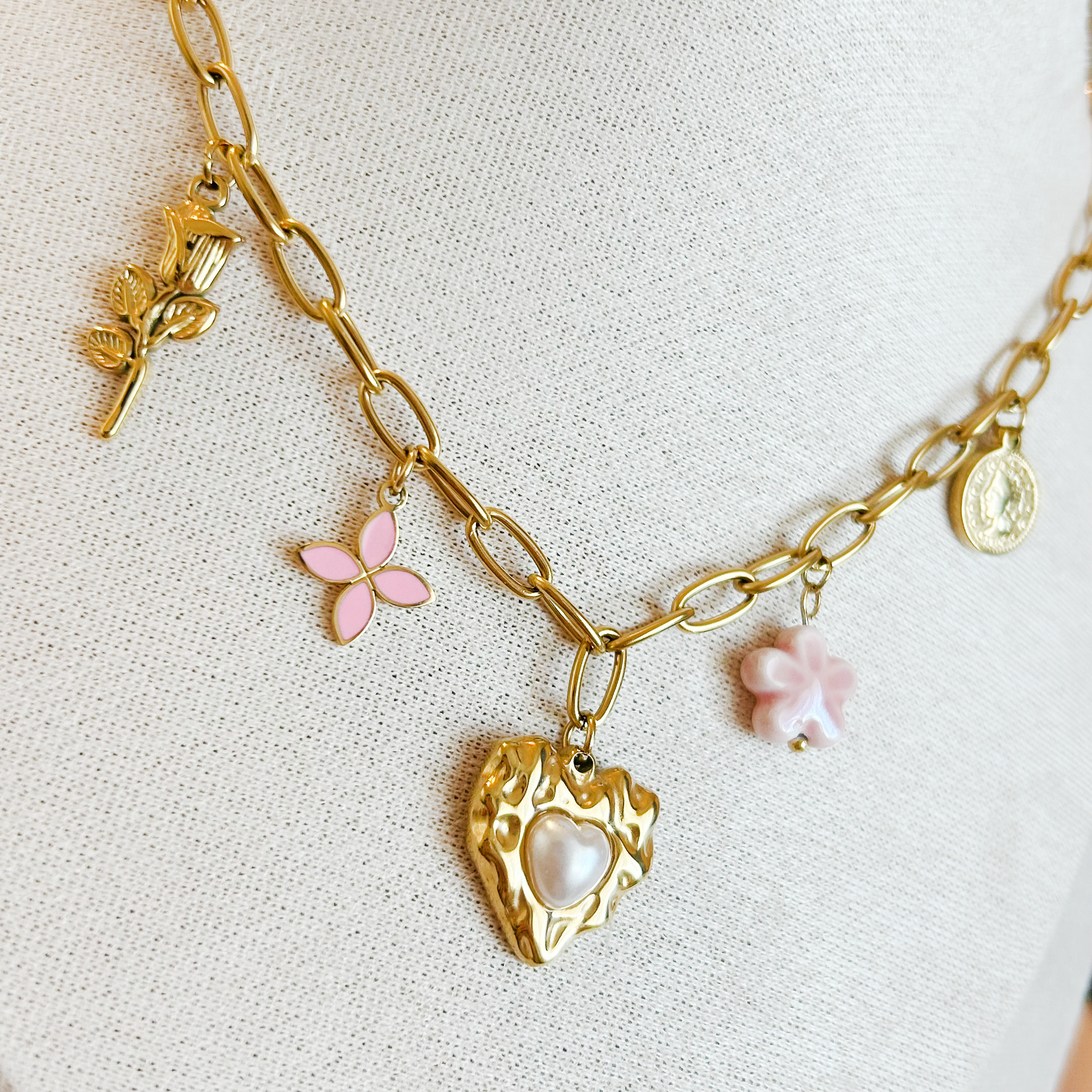 Gefertigt aus hochwertigem, vergoldetem Edelstahl und sorgfältig ausgewählten Materialien, ist diese Charm-Halskette wasserfest, hautfreundlich und ein faszinierender Blickfang für alle, die ihren Stil mit einer persönlichen und vielschichtigen Note bereichern möchten.