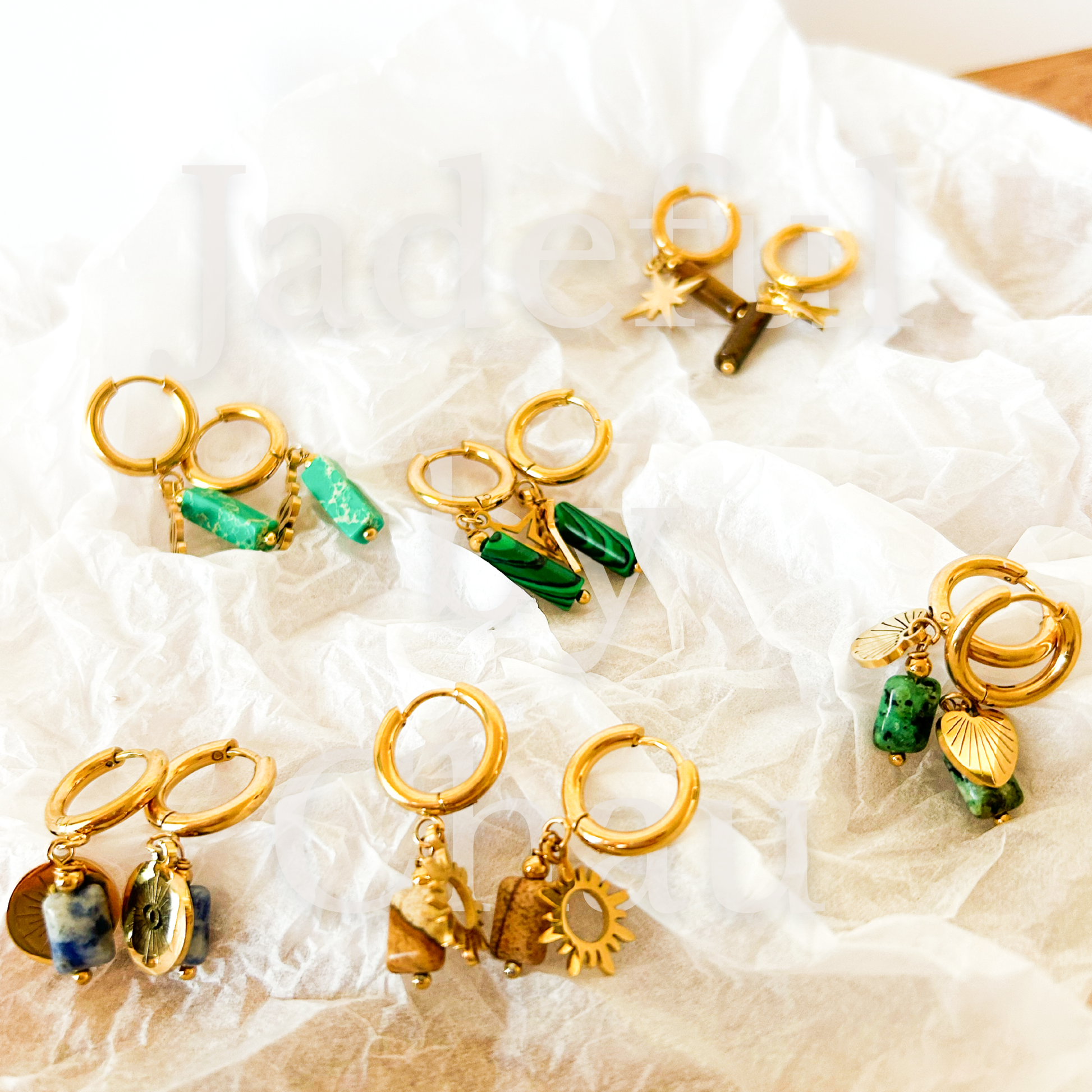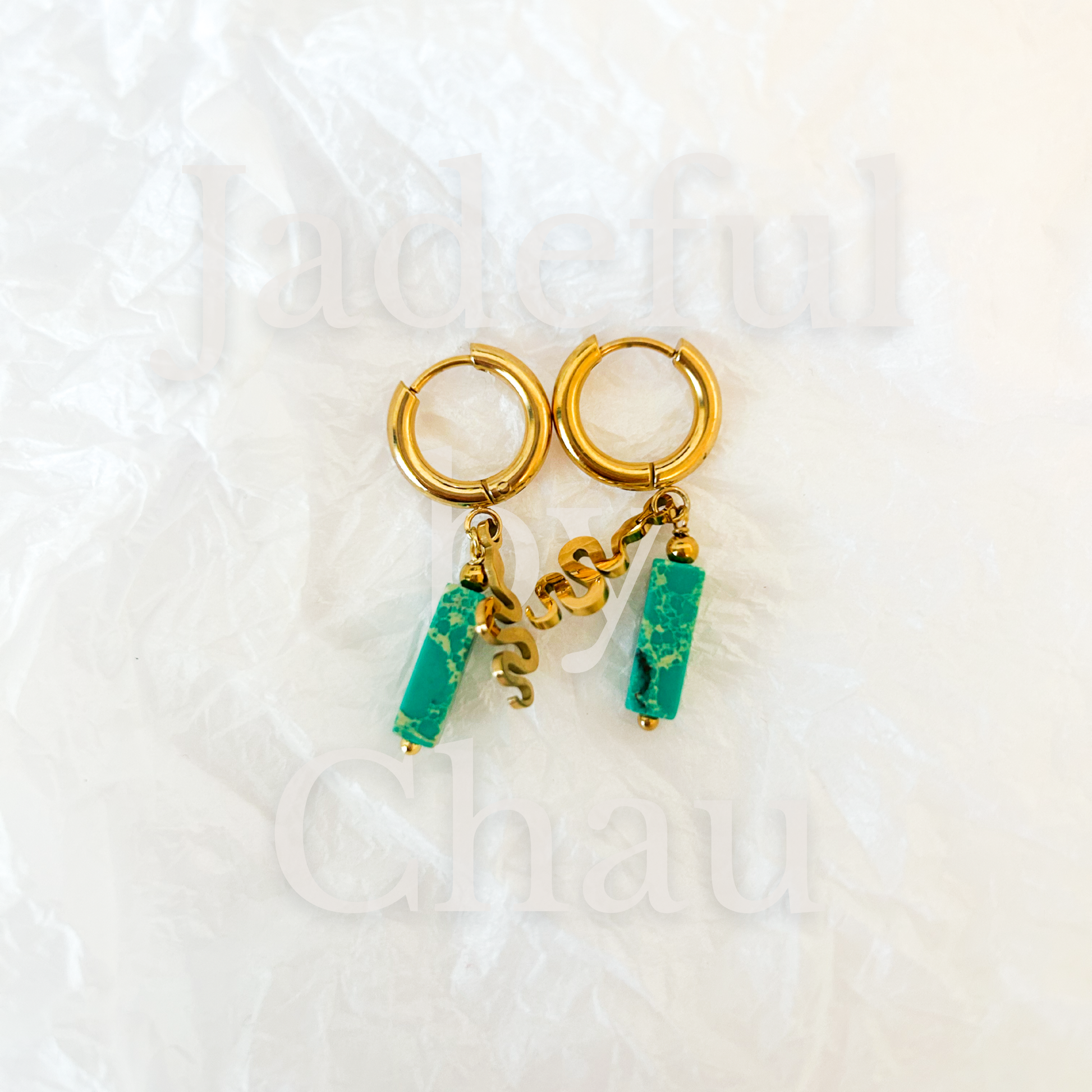 Die SNAKE Ohrringe in Gold vereinen kraftvolle Symbolik mit einem Hauch natürlicher Raffinesse. Ein fein gearbeiteter Schlangenanhänger steht für Transformation und Stärke, während der zweite Anhänger – ein rechteckiger Naturstein in zartem Türkisgrün – dem Design eine ruhige, geerdete Note verleiht. Die zarte Marmorierung des Steins macht jedes Paar zu einem kleinen Unikat. Ob solo getragen oder kombiniert – diese Ohrringe verleihen jedem Look eine besondere Bedeutung.